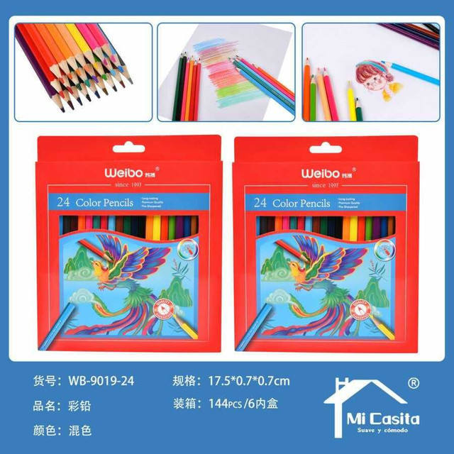 Juego de lápices hexagonales de 24 colores con núcleo de madera y carbono Paquete a granel de 144 piezas por caja Material de papel