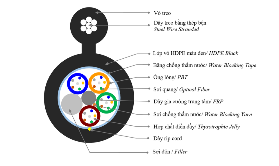 24-Core 4000m Fast Efficient Hanging Cable de fibra óptica aérea no metálica Cable de varios propósitos de Vietnam