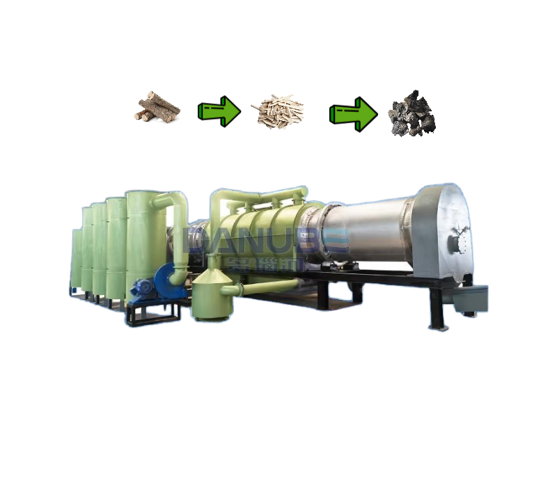 24 horas de funcionamiento automático, cáscara de coco triturada, horno de maderas carbonizadas, horno de carbón rotatorio de seguridad, estufa de carbonización