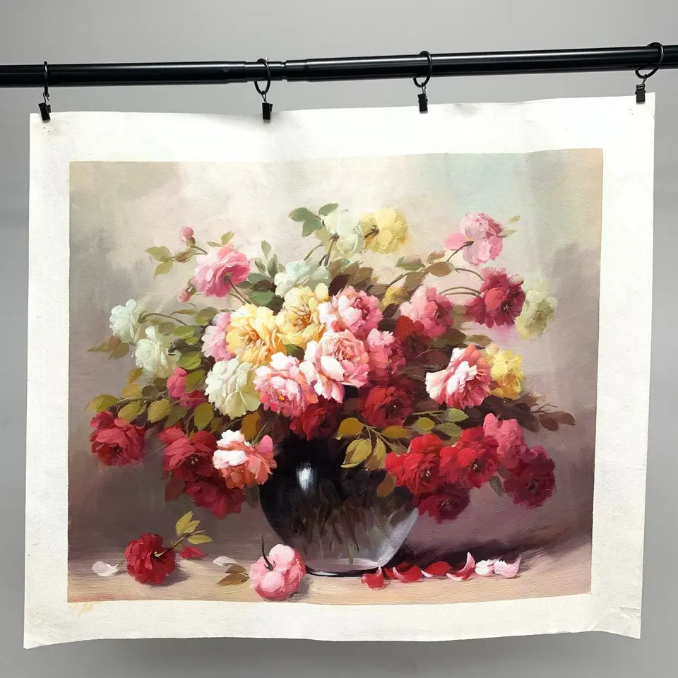 Pinturas al Óleo Pintadas a Mano de 24x20 Pulgadas, 100% Hechas a Mano, Arte Clásico de Campo y Flores para Decoración de Sala de Estar