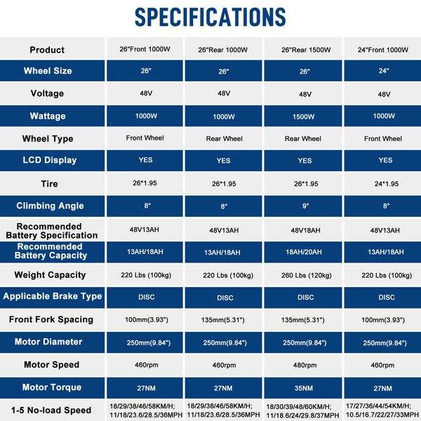 Kit de Bicicleta Eléctrica de 24 Pulgadas y 1000W con Neumáticos Negros, Piezas de Modificación