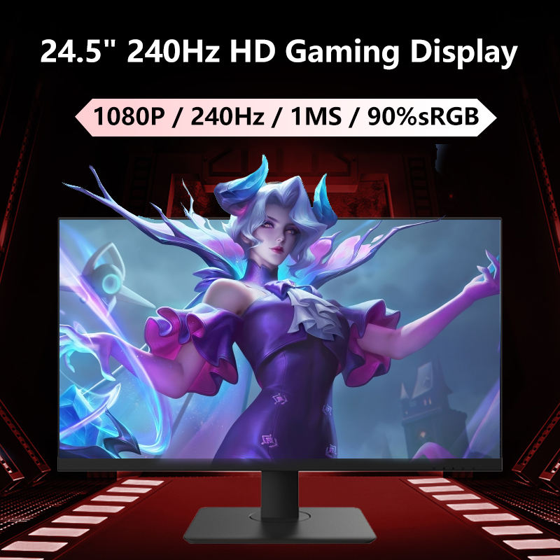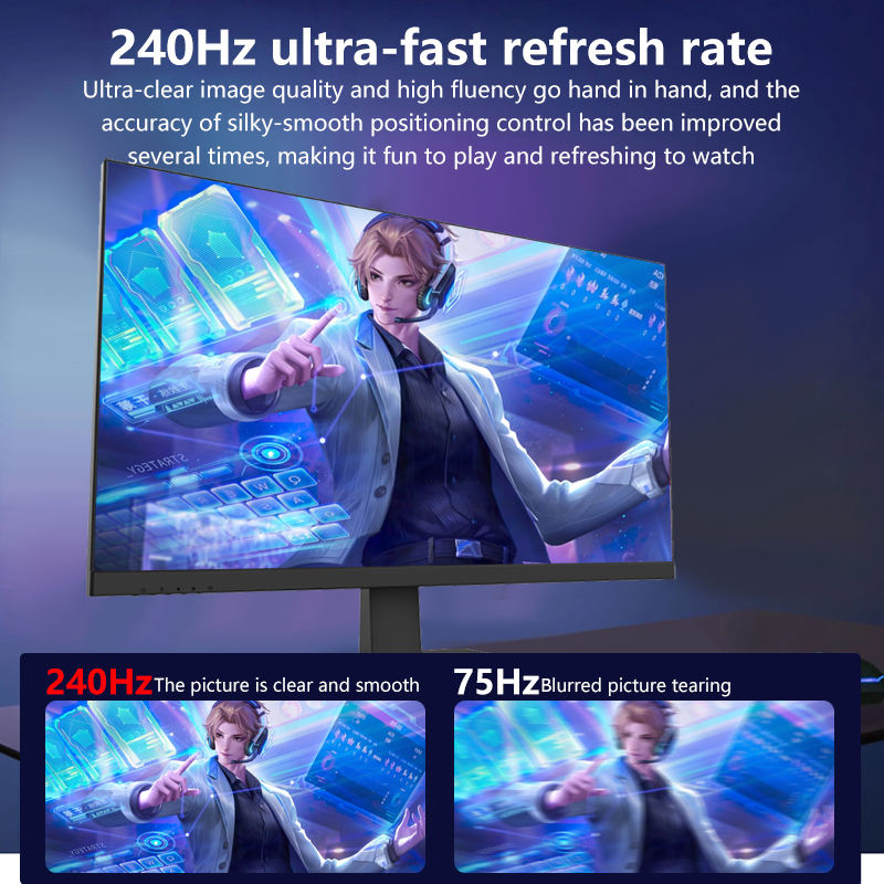 Monitor Gaming de Pantalla Plana de 24 Pulgadas, Panel TN 1k, Bordes Delgados, LED Inteligente, 240Hz, Tiempo de Respuesta de 1ms, 85% SRGB, Amplia Gama de Colores