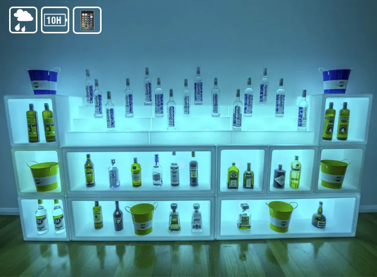Nombre del producto:Estante de botellas de licor con barra trasera iluminada por LED, soporte de exhibición brillante