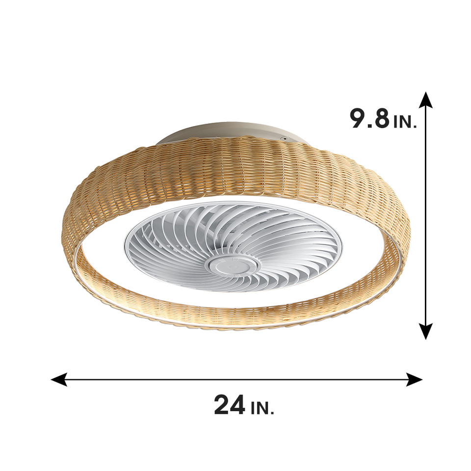 Ventilador de techo enjaulado con aspas de bambú de 24 pulgadas Ventilador de techo de bajo ruido Ventilador de techo de ratán Ventilador de techo con control remoto