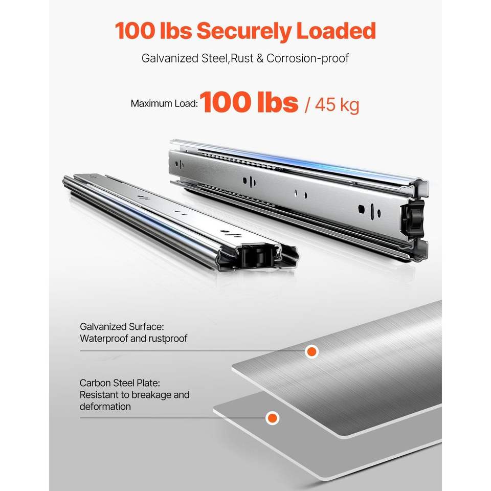 Rieles de Cajón de Extensión Total de 24 Pulgadas con Rodamientos de Bolas, 10 Pares, Capacidad de Carga de 100 LB, Rieles Laterales de Alta Resistencia para Cómodas