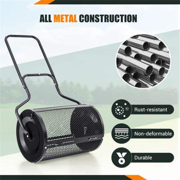 Esparcidor de Compost de Malla Metálica Resistente al Óxido de 24 Pulgadas, Esparcidor de Césped de Gran Capacidad de 2.7 Pies Cúbicos para Esparcir Turfa y Fertilizantes
