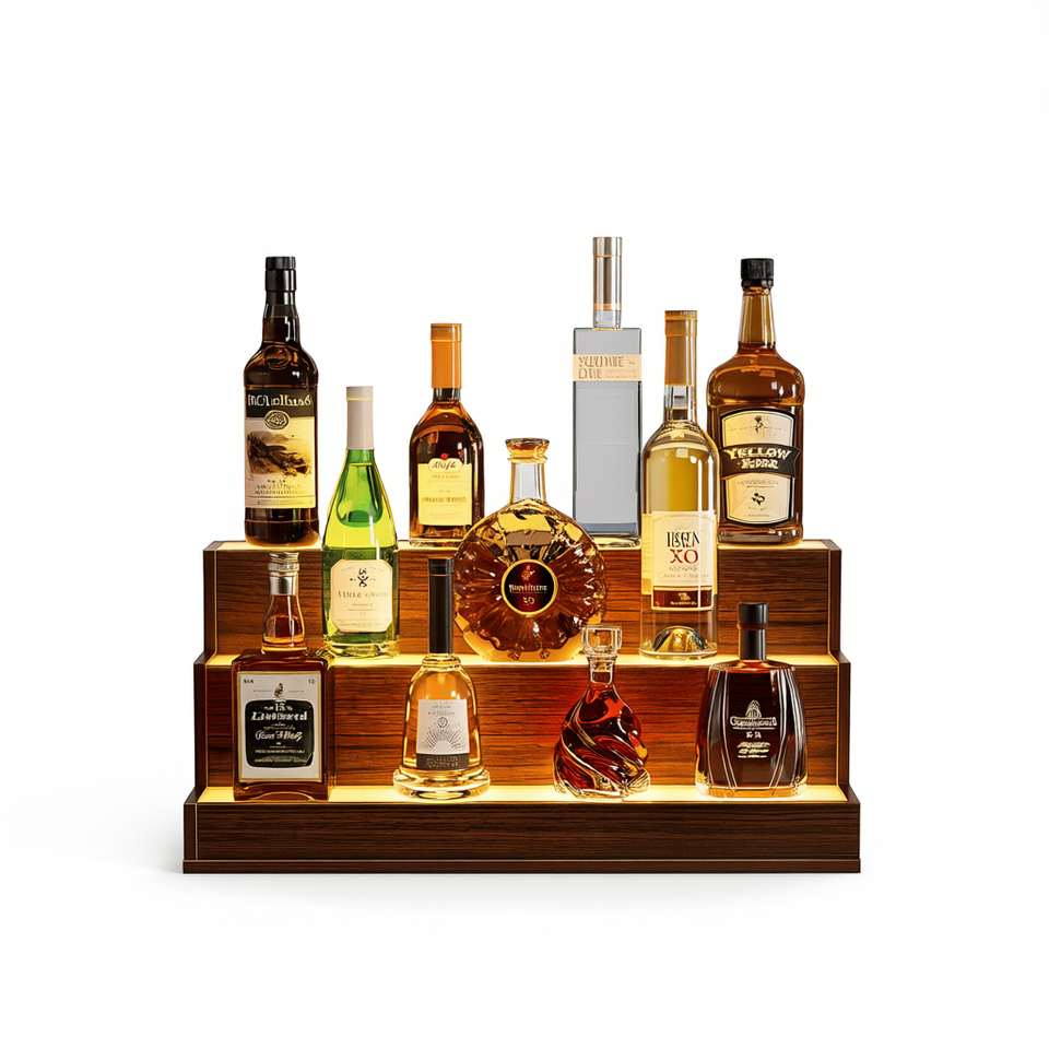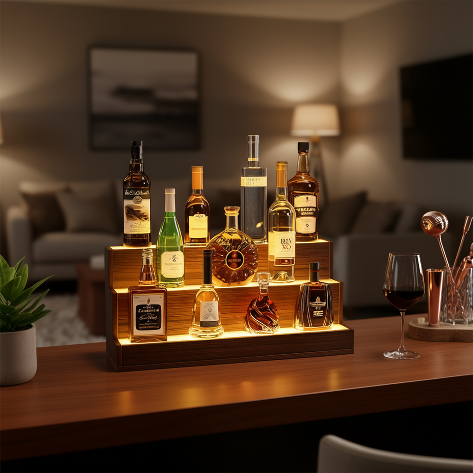 Estante Iluminado para Botellas de Licor de Nogal con Luces LED de 24 Pulgadas, Control Remoto, Barra de Bar Iluminada Independiente con Regulador de Intensidad