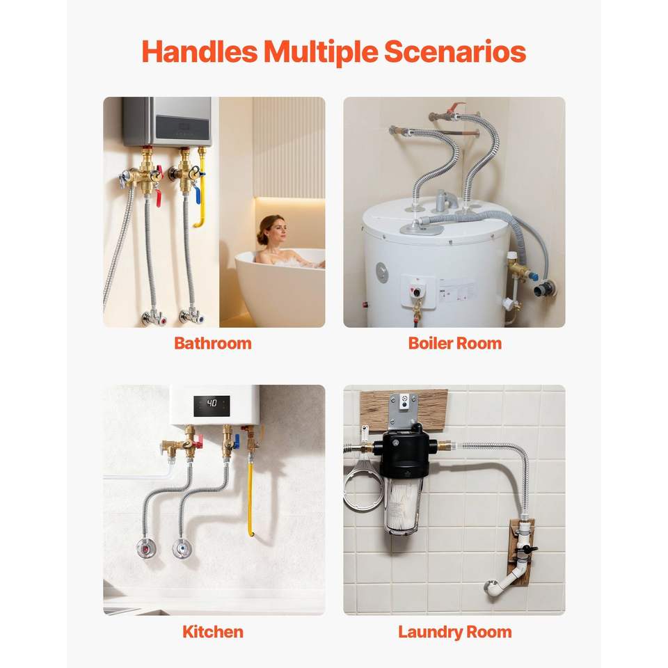 Kit de calentador de agua de 24 pulgadas de longitud con conector flexible de entrada de 3/4'' FIP x 3/4'' FIP para una fácil instalación de mangueras de plomería