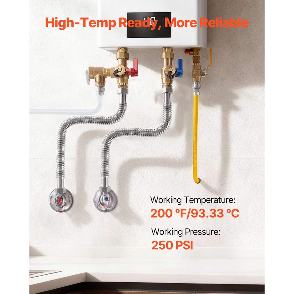 Kit de Calentador de Agua de 24 Pulgadas de Largo con Conector Flexible de Entrada de 1'' FIP X 1'' FIP para una Fácil Instalación de Plomería