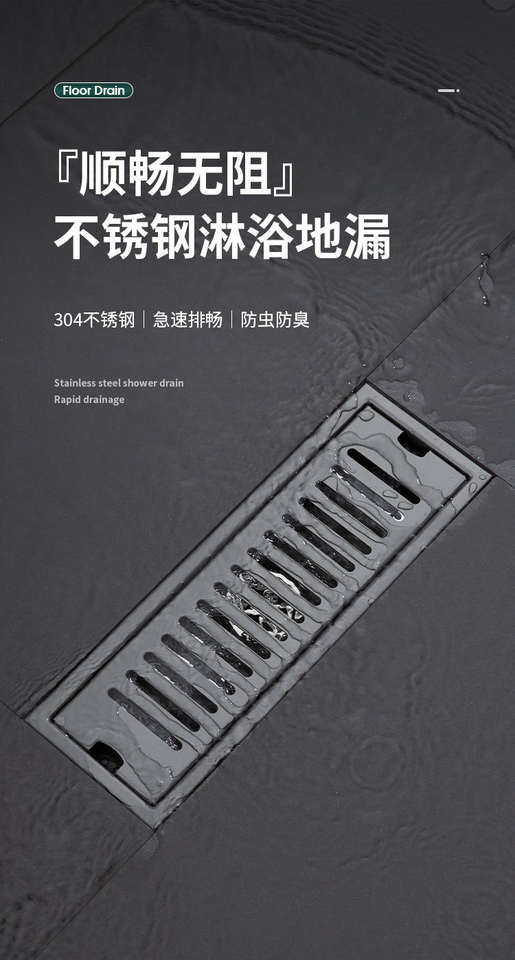 Desagüe de Piso Rectangular Moderno de 24 Pulgadas, de Acero Inoxidable Cromado, de Alta Calidad, para Bañera de Hotel, con Filtro Desodorante para Baño