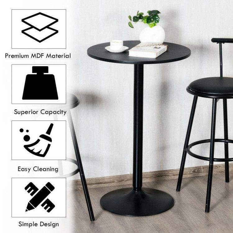 Mesa de Cóctel Redonda de Estilo Moderno de 24 Pulgadas con Base de Metal y Tablero de MDF para Áreas de Bar