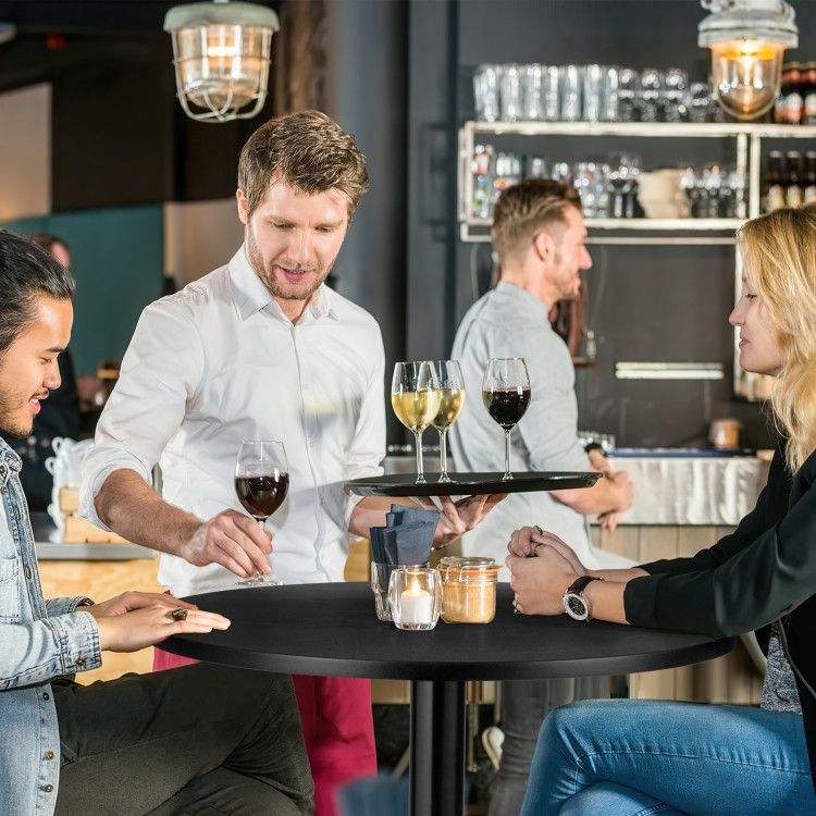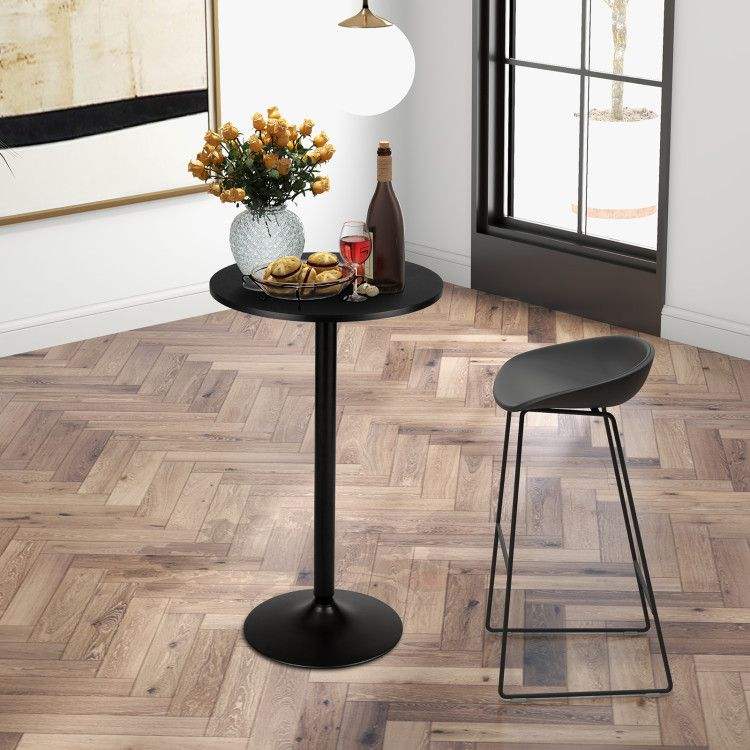 Mesa de Cóctel Redonda de Estilo Moderno de 24 Pulgadas con Base de Metal y Tablero de MDF para Ambientes de Bar