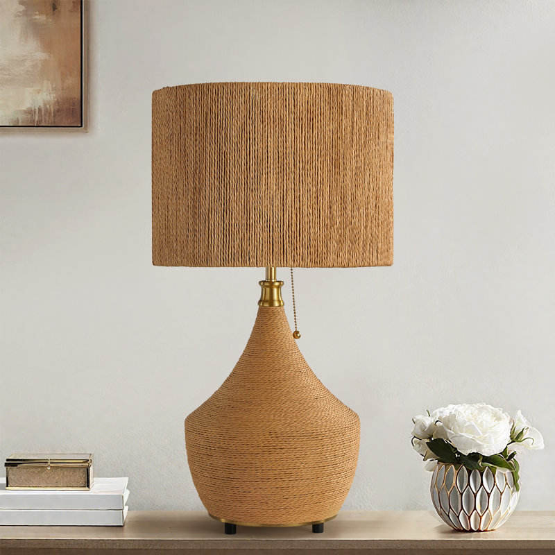 Lámpara de Mesa de Noche DreamCraft de Ratán Natural de 24 Pulgadas con Elegante Diseño de Puff de Vietnam para Decoración de Dormitorio