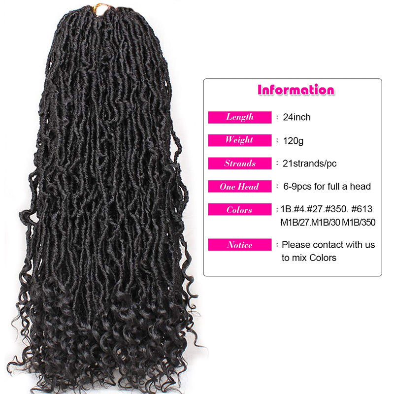 Extensiones de pelo de ganchillo para mujer, pelo largo con trenzas rizadas de 24 pulgadas