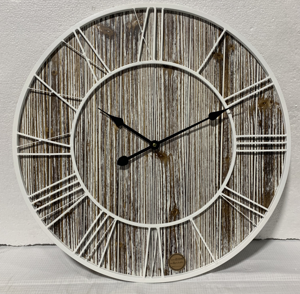 Reloj de Pared Rústico de 24 Pulgadas con Tabla de Madera y Metal para Decoración de Pared en Sala de Estar, Cocina u Oficina