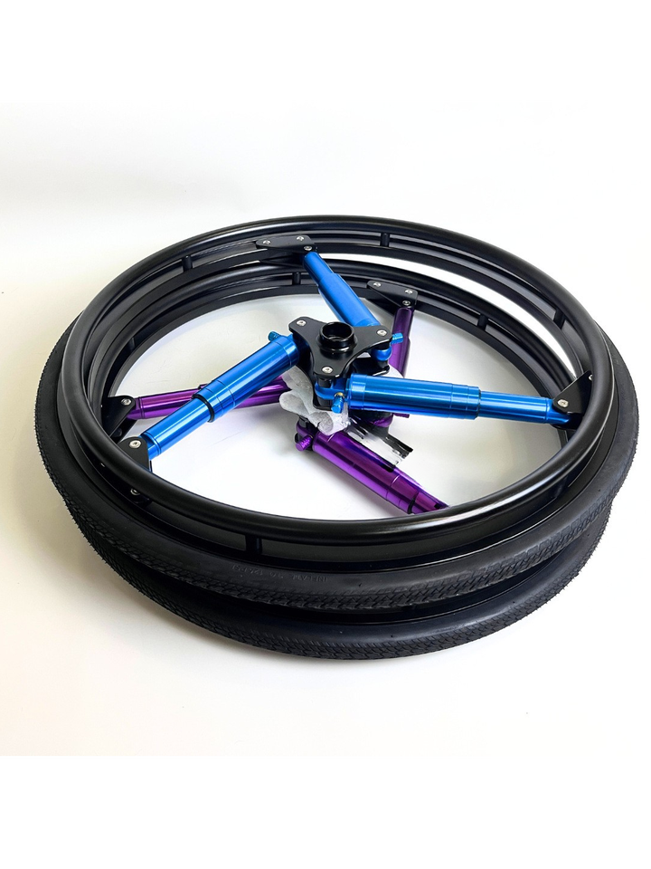 Sillas de ruedas deportivas y de carreras con ruedas aerodinámicas estilo Spinergy de aleación de titanio de 24 pulgadas