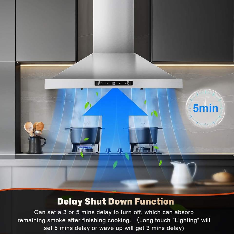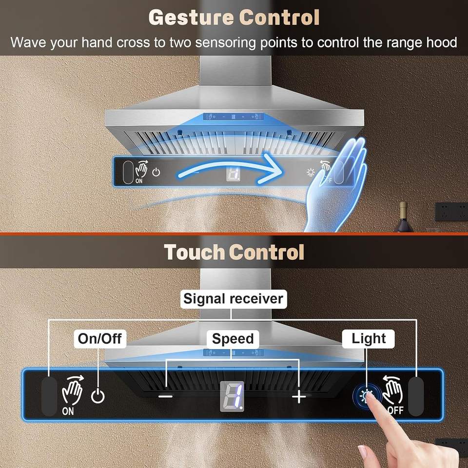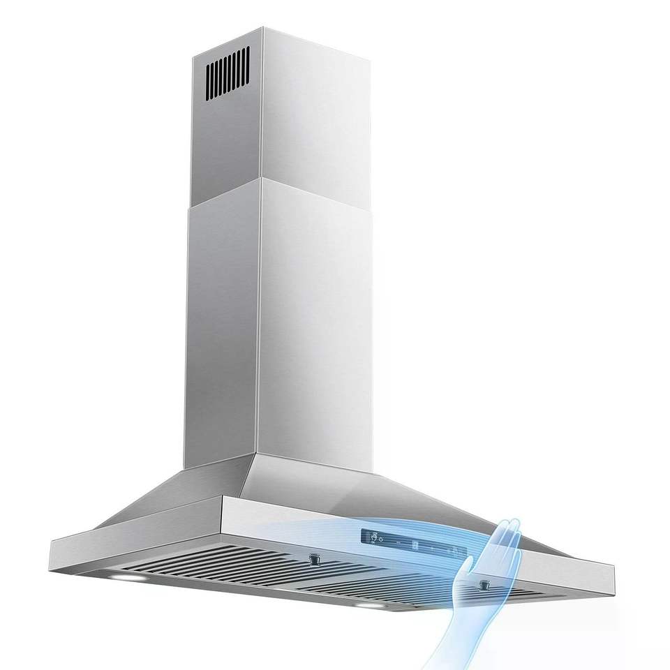 Campana extractora de pared de 24 pulgadas con/sin conducto, 450 CFM, de acero inoxidable, con controles táctiles y sensor de gestos