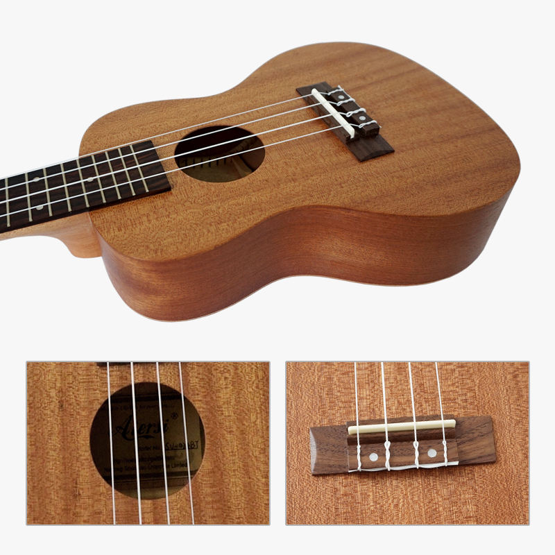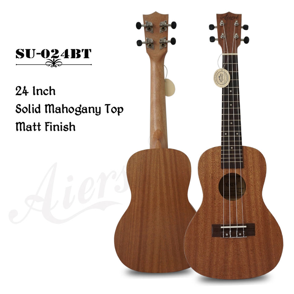 Ukelele Chard de 24 Pulgadas con Tapa de Caoba Maciza de Acabado Impecable, Guitarra de Concierto Hecha a Mano de Alta Calidad, Logotipo Personalizado, Marca Aiersi