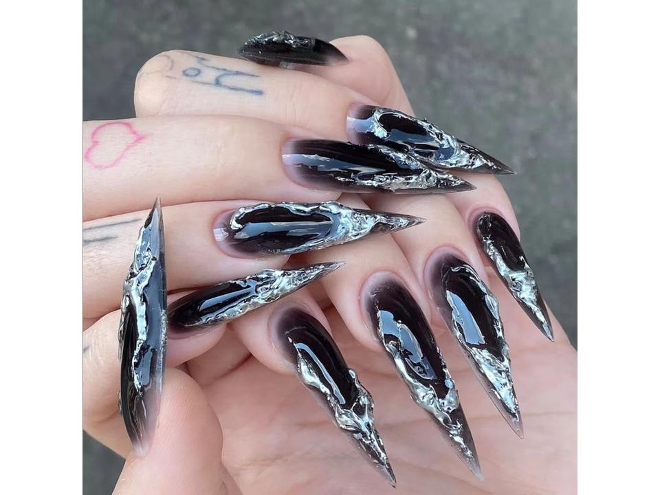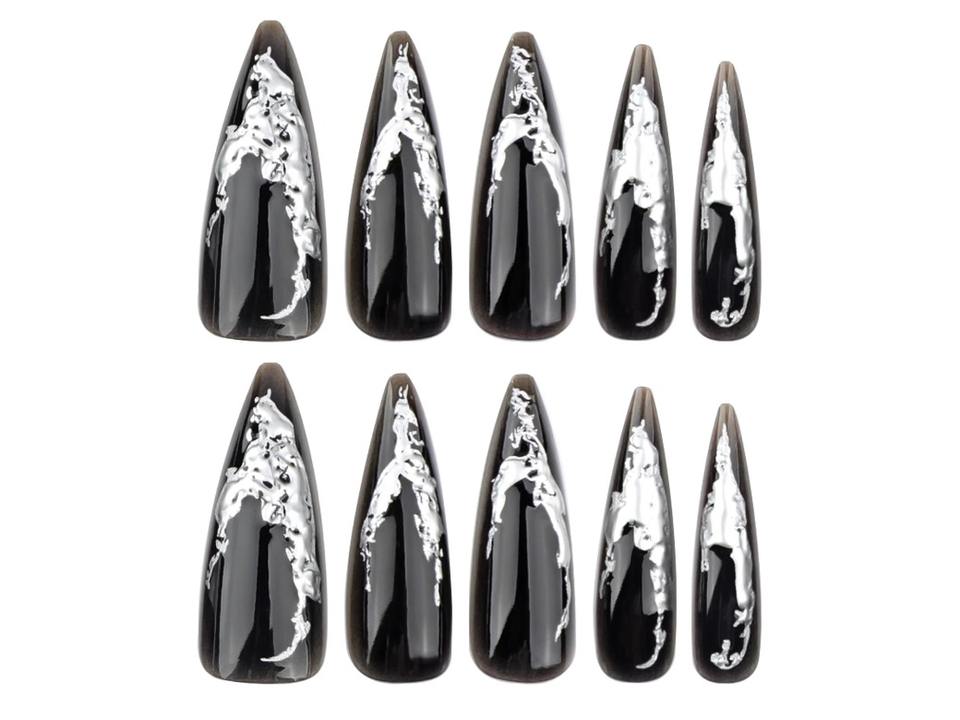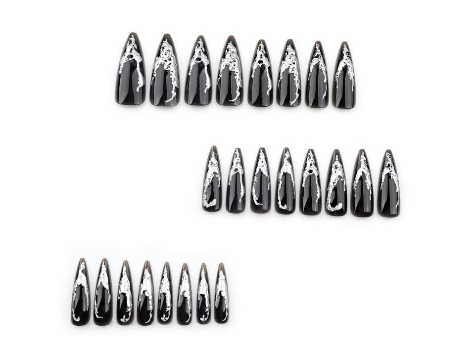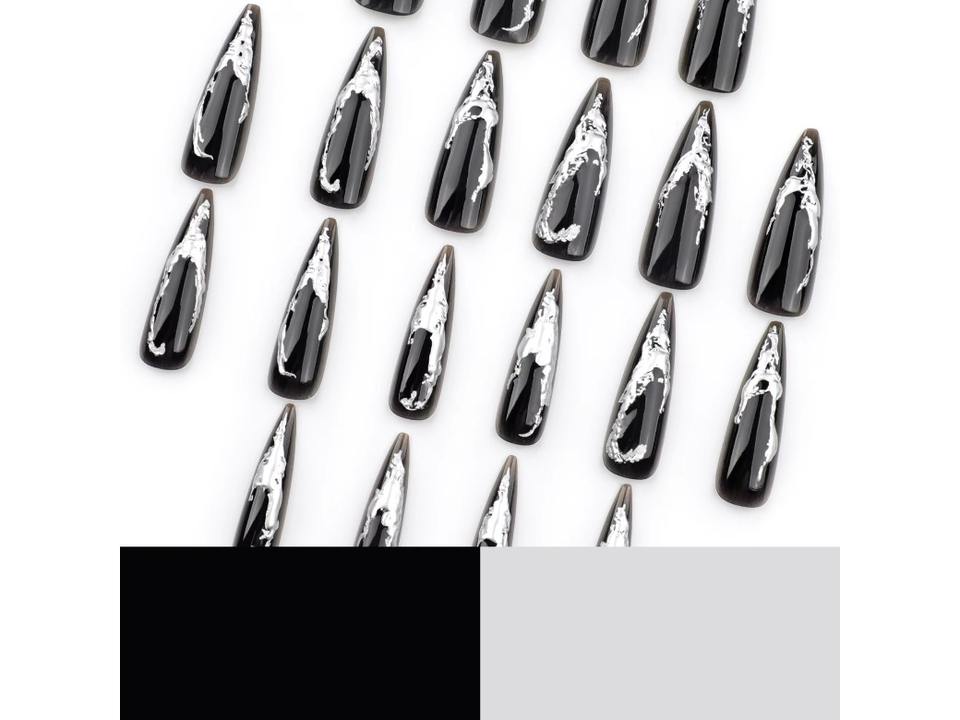 24 Uñas Postizas Largas y Puntiagudas con Lámina Plateada, Uñas Acrílicas a Presión, Uñas Artificiales, Uñas Falsas 3526