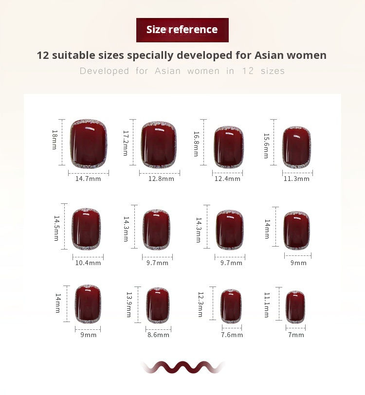 24 Unids/caja Color Vino tinto Prensa en las puntas de las uñas Tamaño corto Vida diaria Uñas artificiales Brillo Uñas postizas