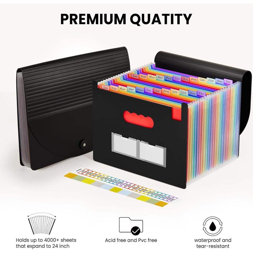 Carpeta de Archivos Expandible de 24 Bolsillos con Etiquetas en Blanco, Cubierta de Acordeón para Escritorio, Organizador Personalizable para una Gestión de Archivos Conveniente