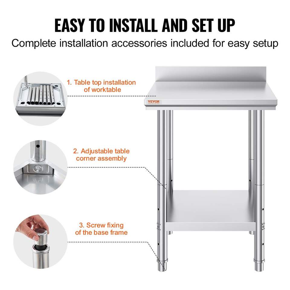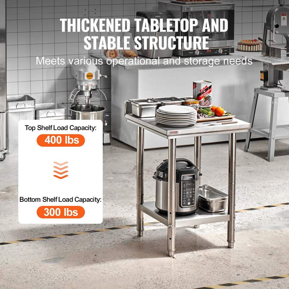 Mesa de Trabajo de Acero Inoxidable Resistente de 24 x 24 x 35 Pulgadas, Mesa de Preparación de Alimentos Comercial, Mesa de Trabajo Metálica, Fabricación de Acero para Cocina