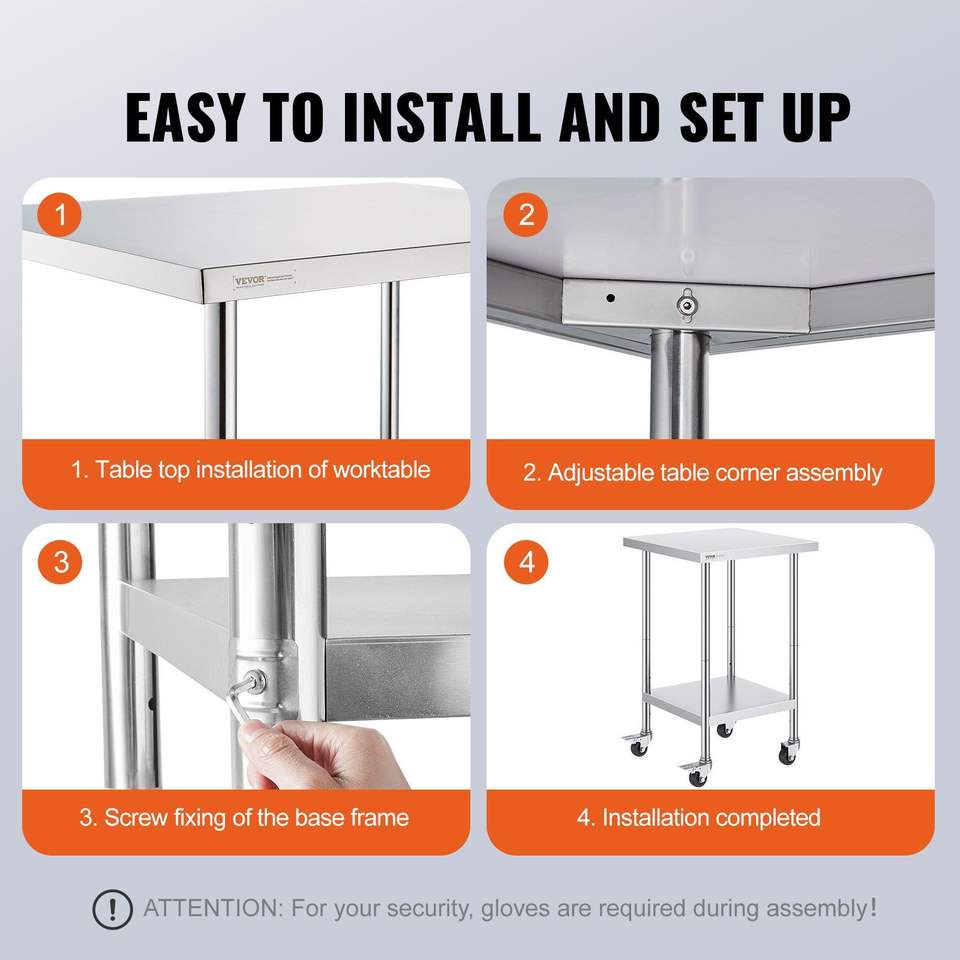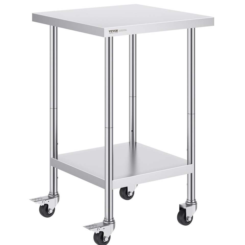 Mesa de Trabajo de Acero Inoxidable Resistente de 24 x 24 x 38 Pulgadas, Capacidad de Carga de 700 LBS, 4 Ruedas, 3 Niveles, Fabricación de Acero para Cocina Comercial