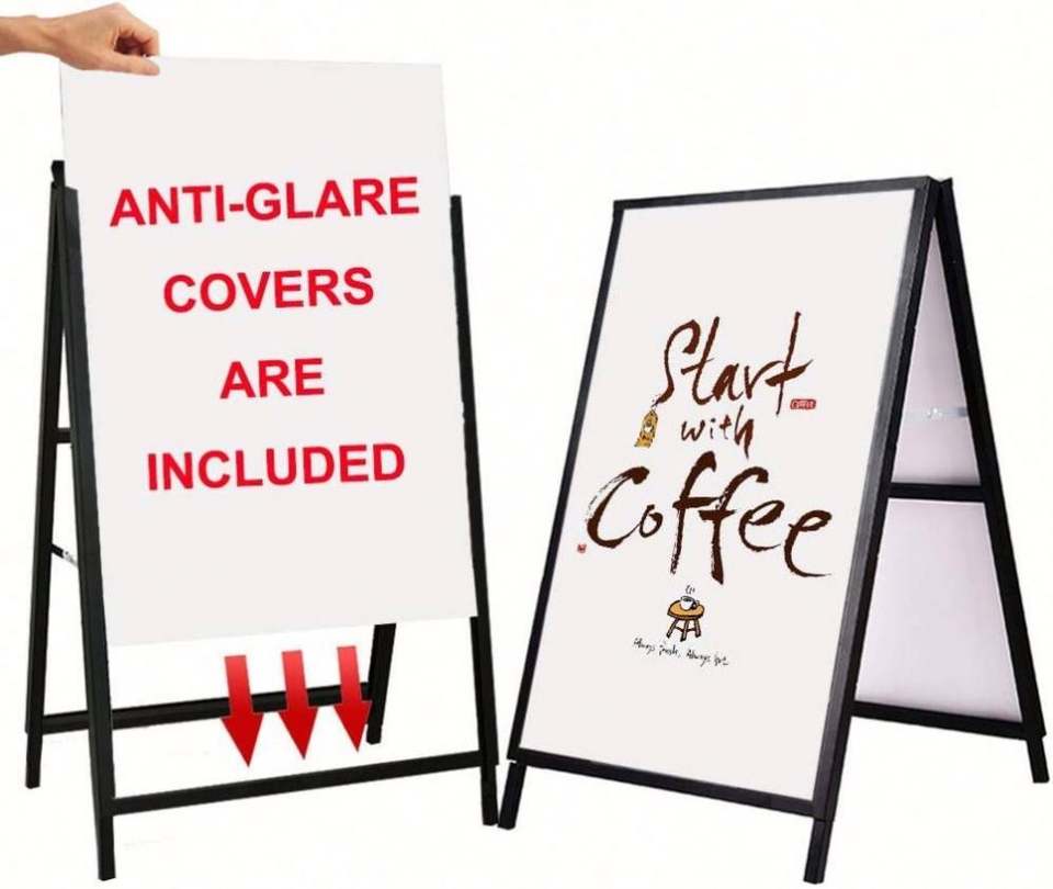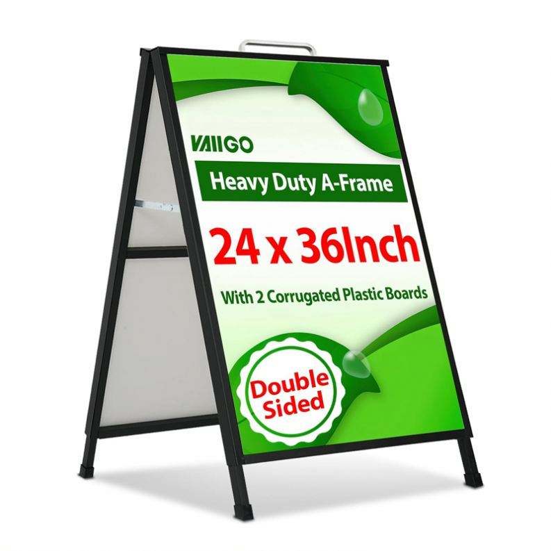 Letrero Publicitario Portátil Plegable Tipo A de 24 x 36 Pulgadas con Asa de Transporte, Letrero Resistente para Acera con Panel Deslizable para Publicidad Exterior