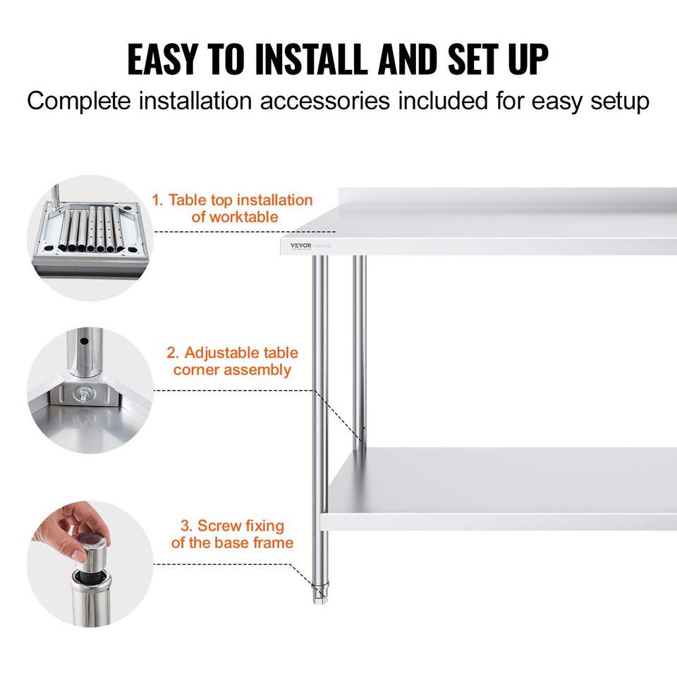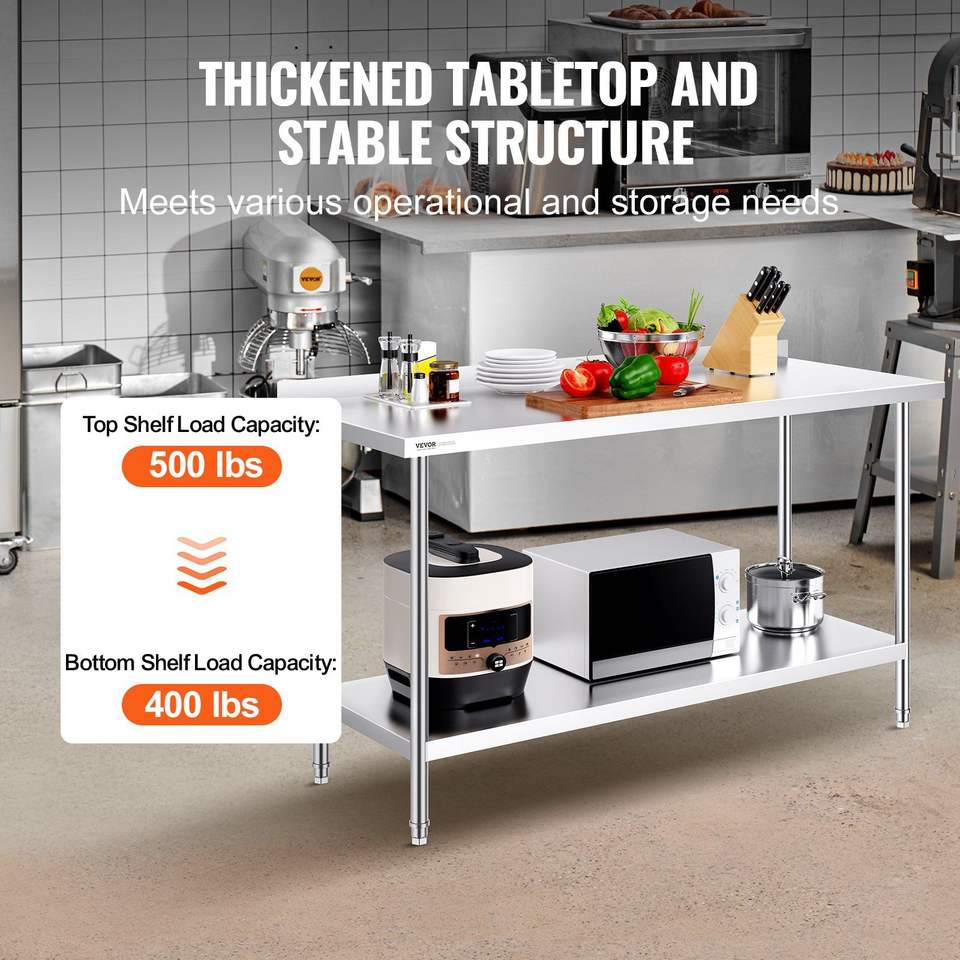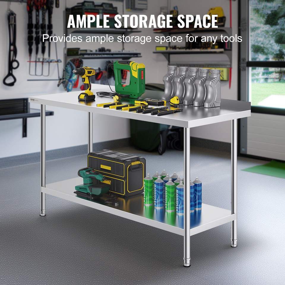 Mesa de Trabajo de Acero Inoxidable Resistente de 24 x 60 x 36 Pulgadas, Fabricación de Acero para Cocina Comercial, para Preparación de Alimentos