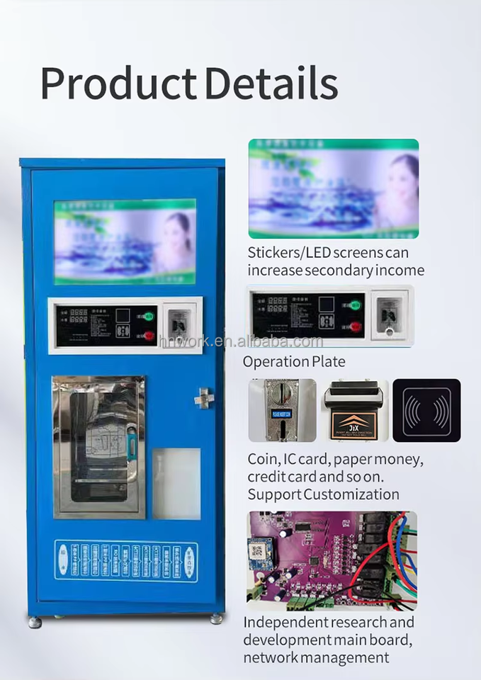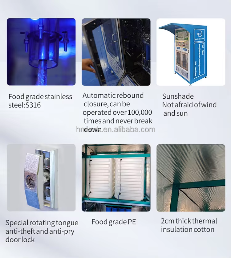 Máquina Expendedora de Agua de Ósmosis Inversa RO de 24 Horas, Máquina Expendedora de Agua Alcalina y Agua con Hielo, Admite Pago con Tarjeta de Crédito y Móvil