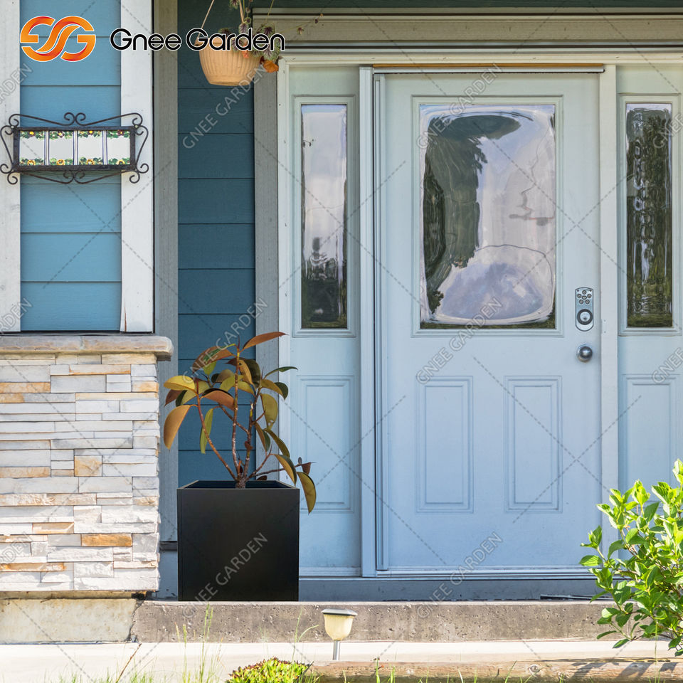 Maceta Grande Cuadrada de Fibra de Vidrio Negra de 24 Pulgadas, Estilo Americano, para Interior y Exterior, Sin Recubrimiento, para Uso en Hoteles