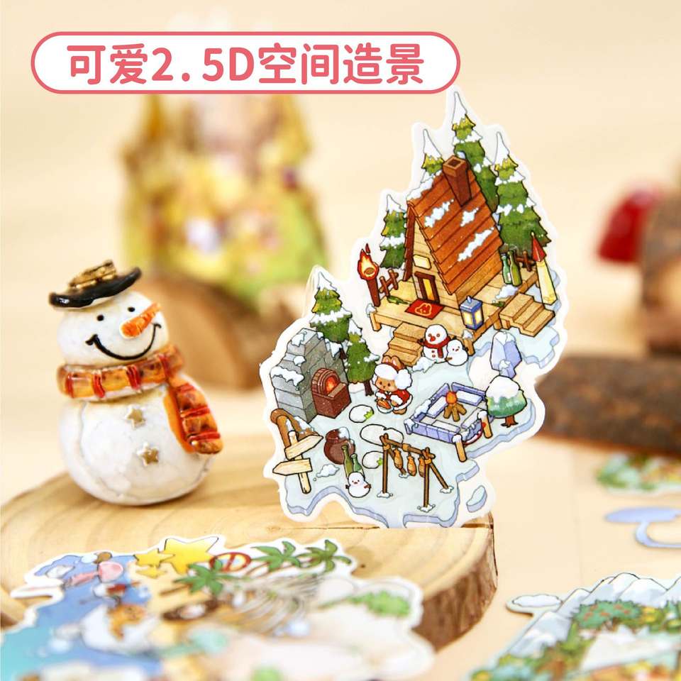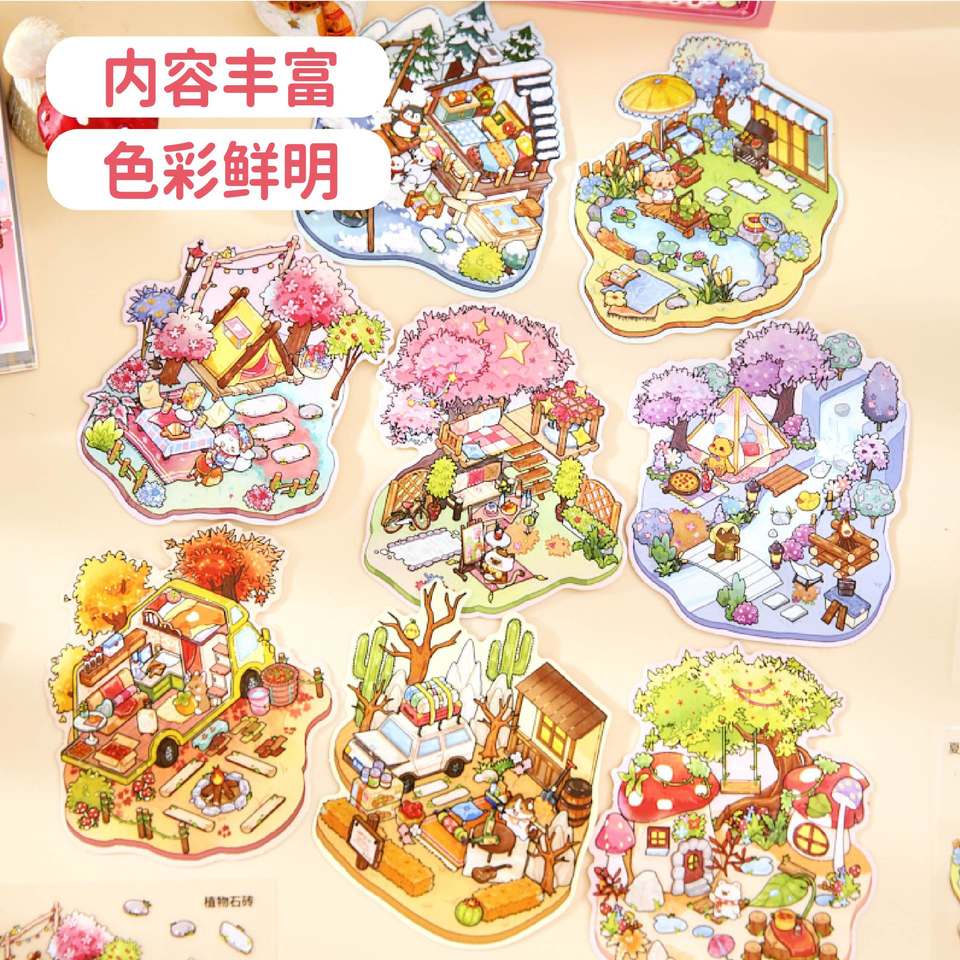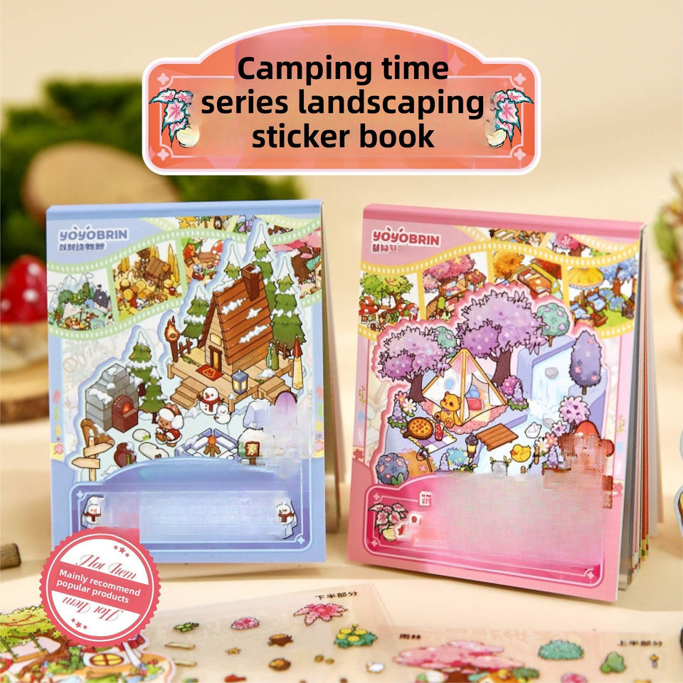 Paquete de 24 hojas MINI 2.5D 3D Libro de Pegatinas de Paisajes, Pegatinas Divertidas de Tiempo de Camping para Niños, para Diario y Libro de Actividades
