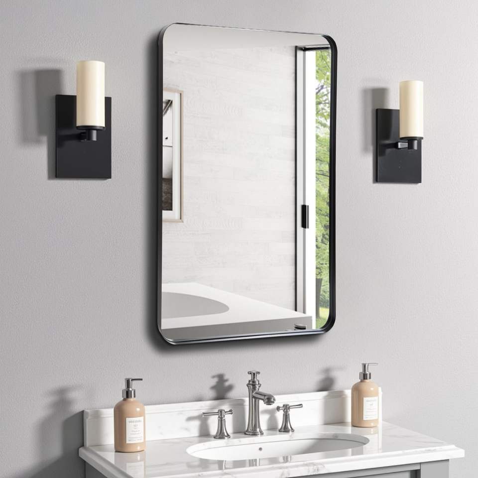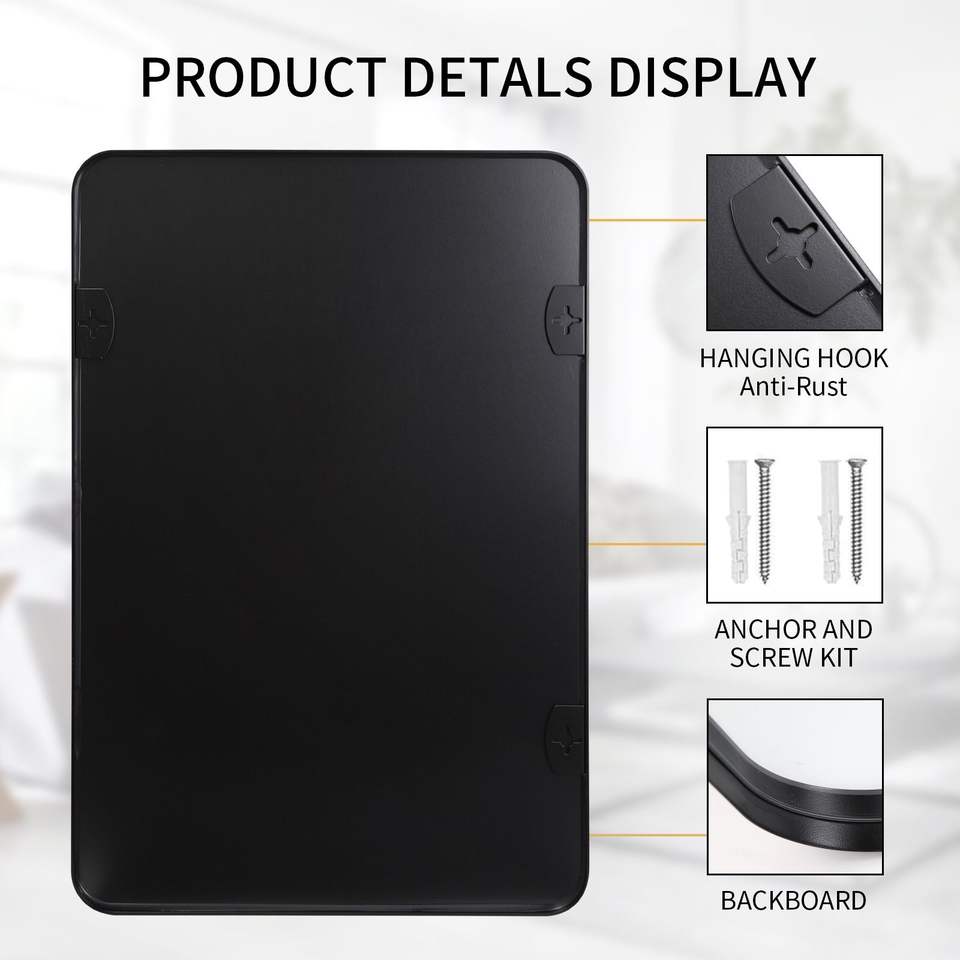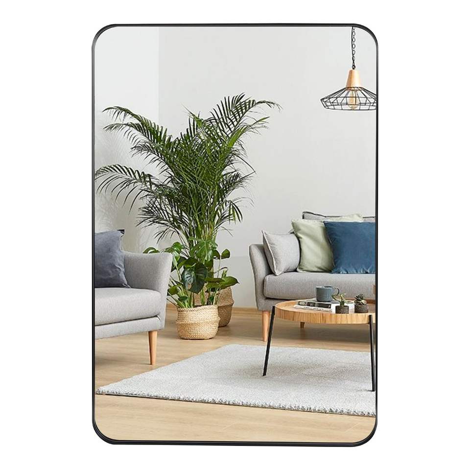 Espejo de Pared Rectangular Moderno de 24 x 36 Pulgadas, Marco Profundo de Metal Negro para Dormitorio, Sala de Estar, Entrada - Espejo Decorativo de Pared