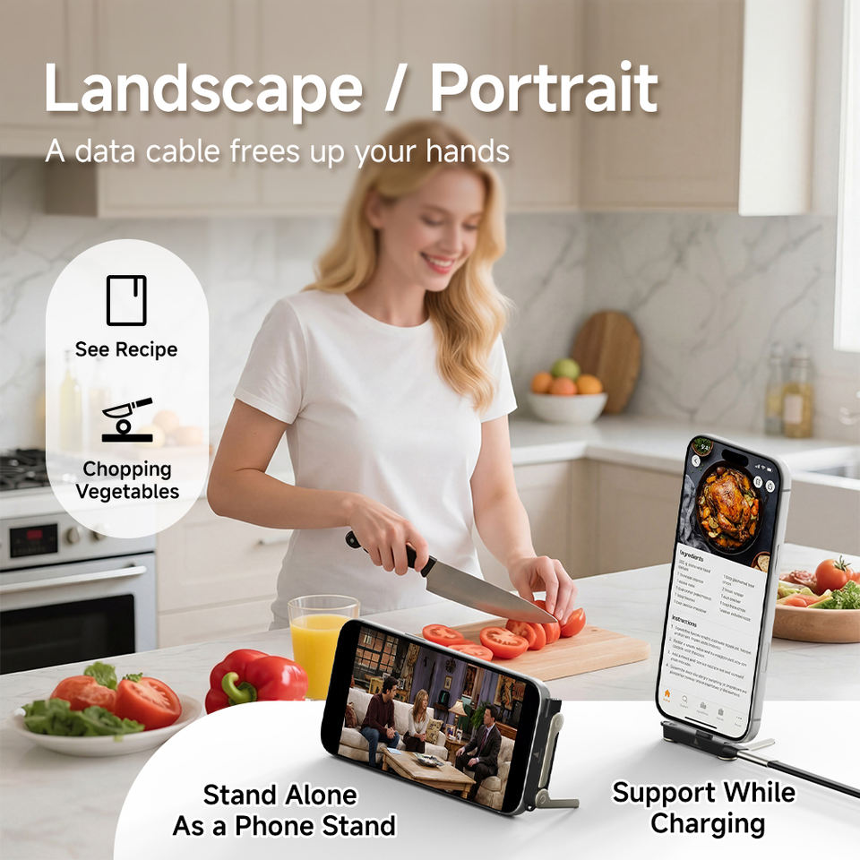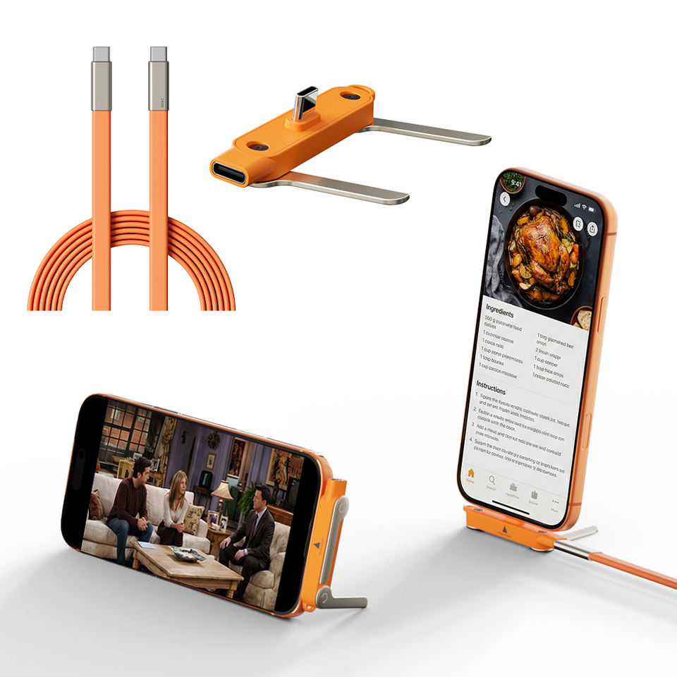 Cable de 240W con Adaptador de Pulsera, Cable Multi-Cargador con Soporte Multiángulo Ajustable Tipo C, Cable de 1.5M/5FT con Chip E-Mark
