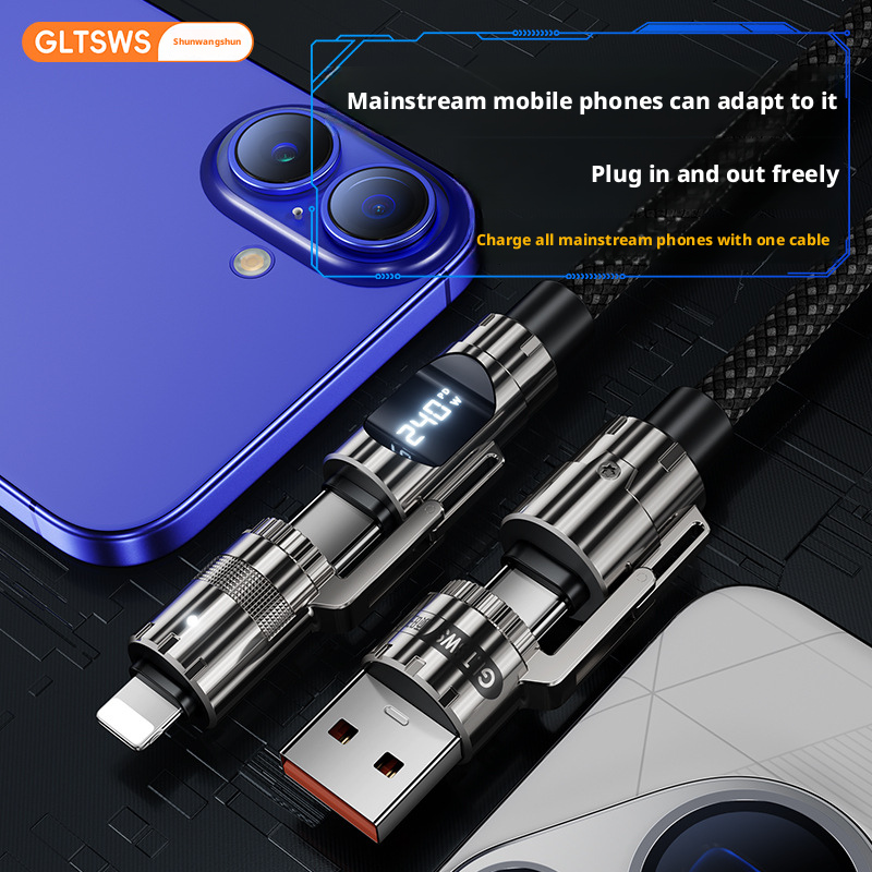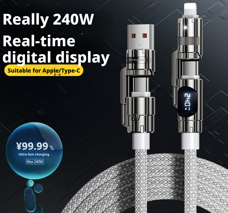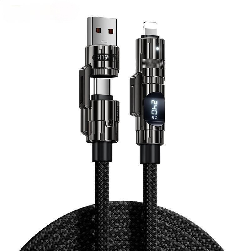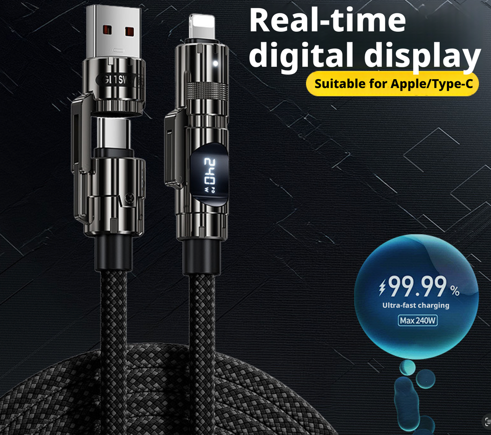 Cable de Datos de 240W 4 en 1 con Pantalla LED Inteligente, Cable de Carga Rápida con Tejido de Nailon de 1.5M