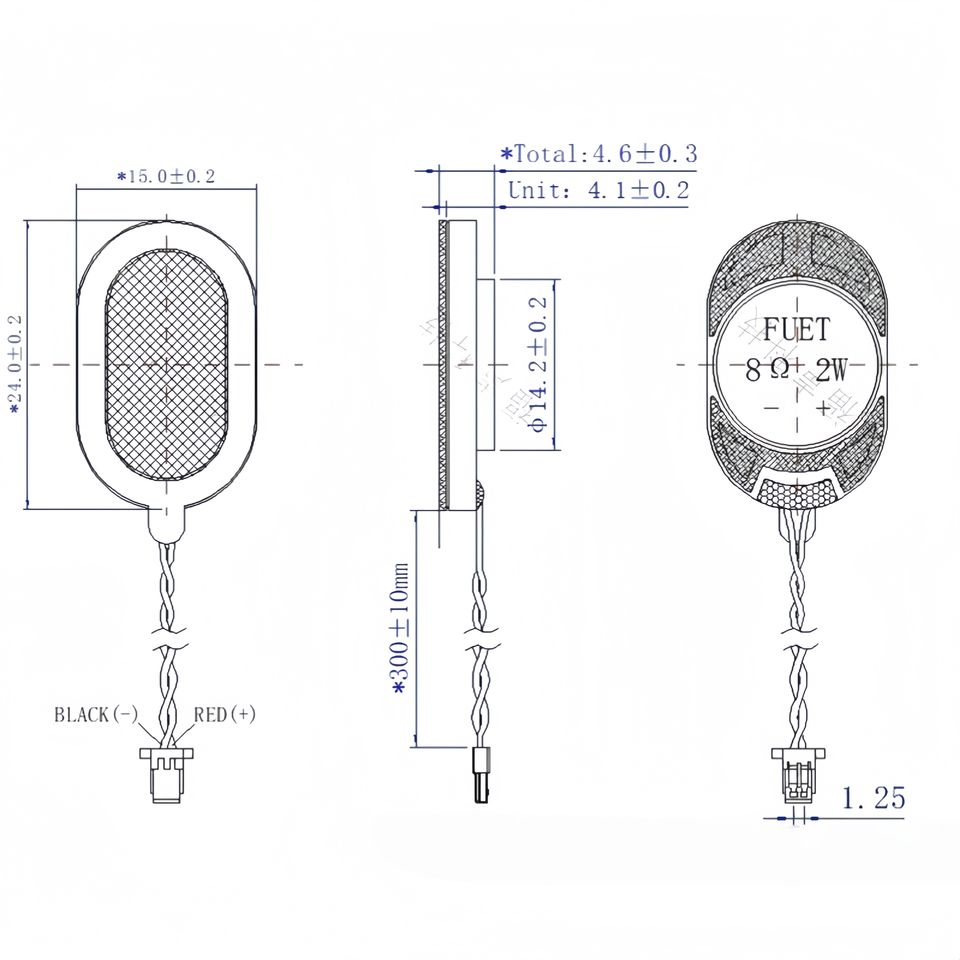 Descripción:2415 24MM * 15MM * H4.6MM 8Ohm 2W Mylar altavoz