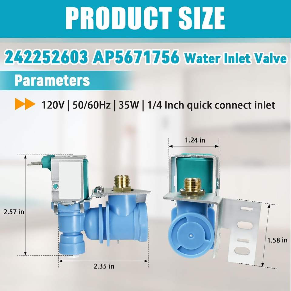 242252603 Válvula de entrada de agua para nevera, Frigi daire Elec trolux Ken more, reemplaza AP5671756, 241803703, 241803701