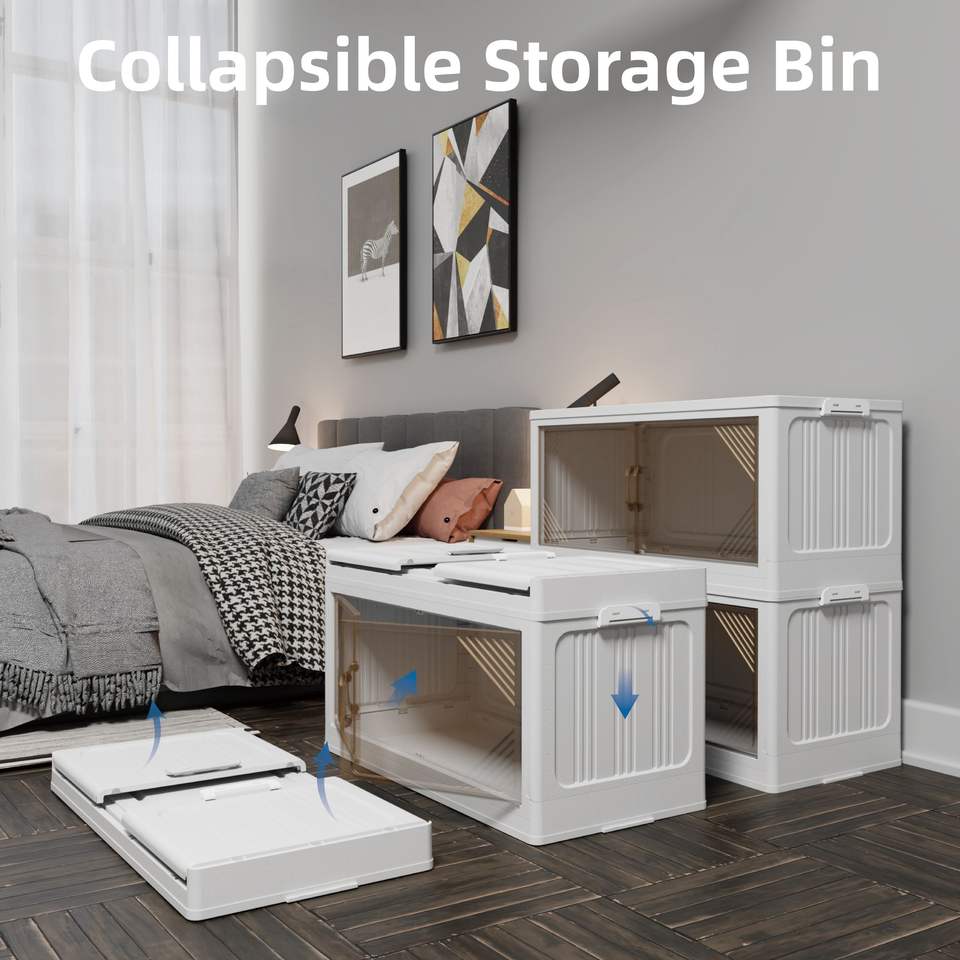 247QT Paquete de 2 Armarios de Almacenamiento de Plástico Transparente de 31.5 Pulgadas de Ancho, Organizadores de Armario Plegables con Cajas de Almacenamiento Apilables