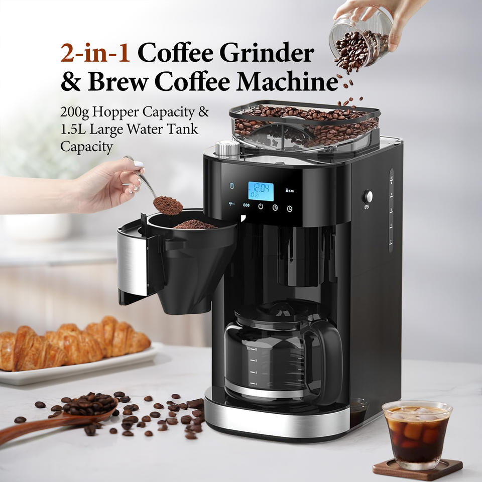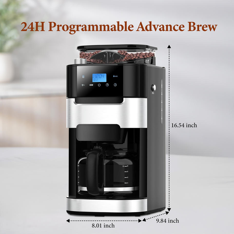 Cafetera por goteo de 12 tazas con temporizador de 24 horas con molinillo incorporado Máquina de café programable con temporizador Máquina de goteo automática