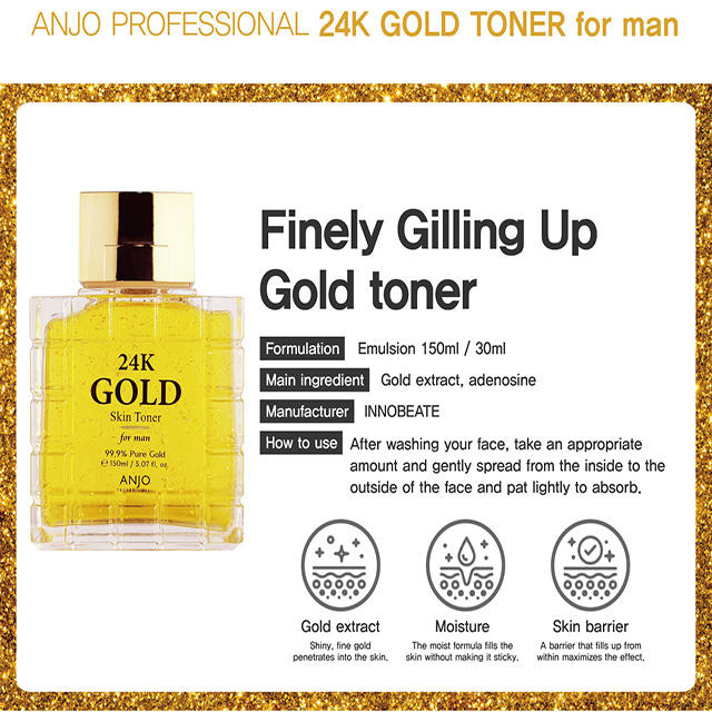 Tónico Facial de Oro de 24K para Hombre, Cuidado de la Piel Vegano Coreano, 150 ml, OBM, Hidratante Blanqueador con Ingredientes de Agua y Glicerina