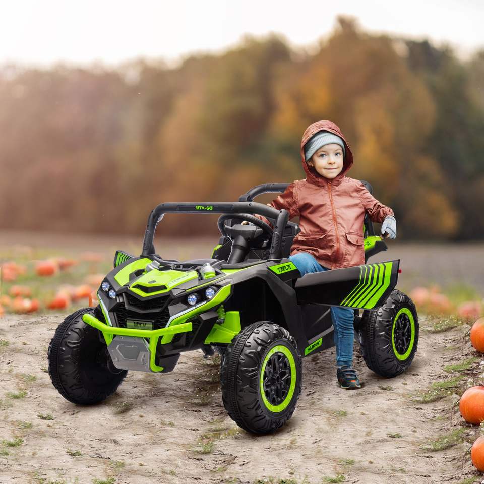 Auto Eléctrico Verde de 24V 7AH para Niños de 3 a 8 Años, 2 Plazas, 4MPH, UTV con 4 Amortiguadores, Música, Bocina y Luces LED