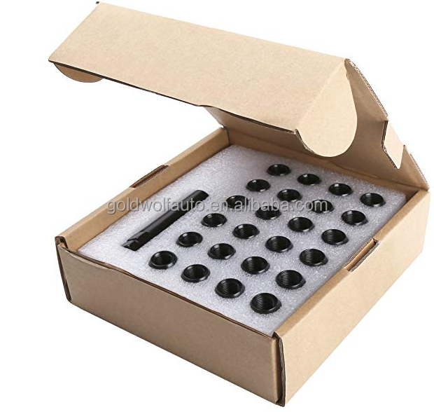 24 tuercas de bloqueo de rueda de 7 estrías 14X1.5 Acorn Close End Black Lug Nut con llave