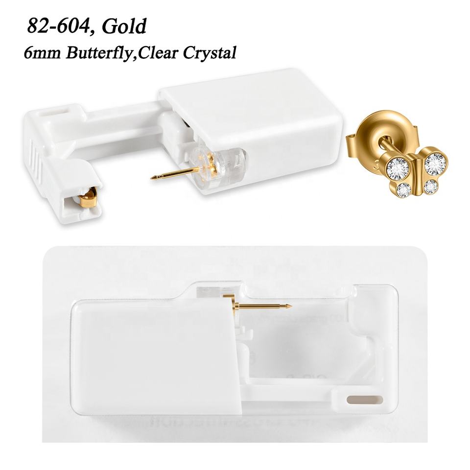Dispositivo Desechable para Perforación de Orejas con 24 Piezas/Caja, con Pendientes de Mariposa Chapados en Oro de 24K, Herramienta de Pistola de Perforación de Un Solo Uso, Venta al por Mayor