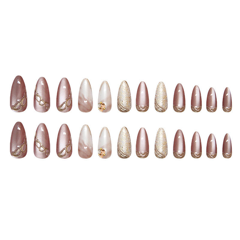 24 Uds. Puntas de uñas postizas degradadas marrones, Ojo de Gato portátil, prensa de almendras en las uñas, diseño de purpurina, juegos de uñas reutilizables