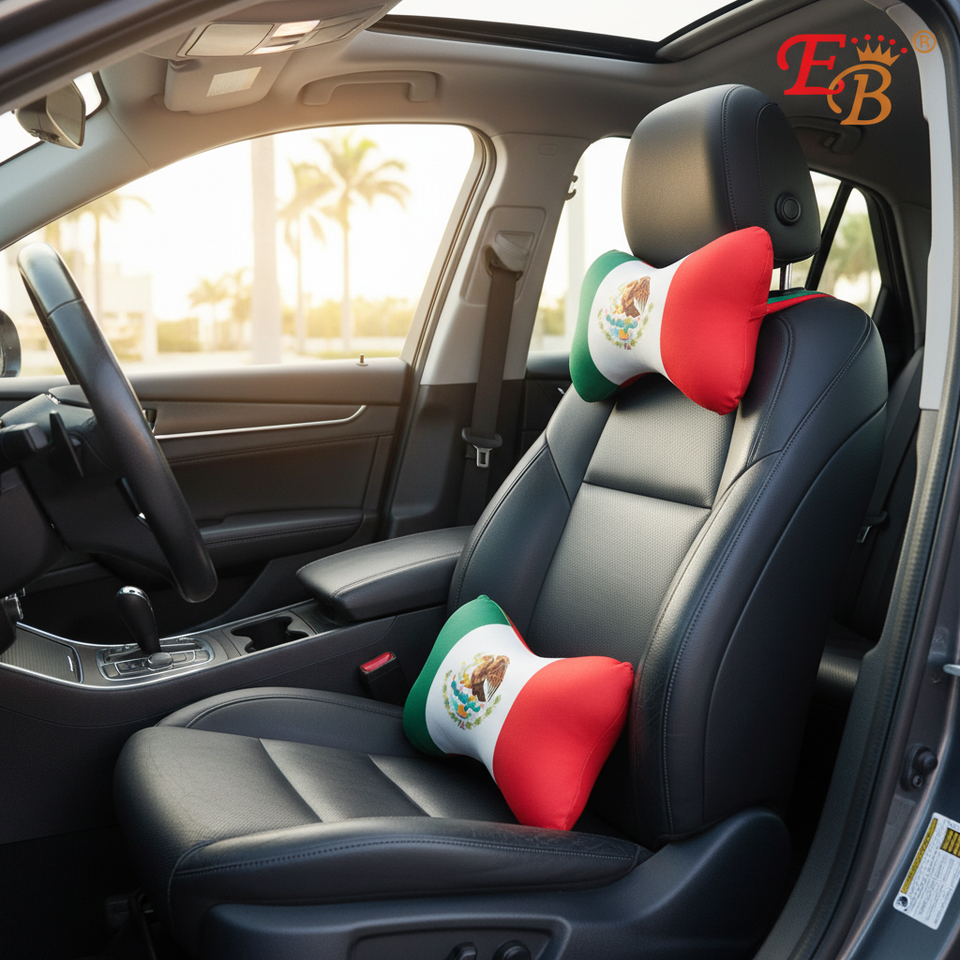 Almohada de cuero para el cuello del coche Eb Sports Style 11X7 con función de ventilación, hecha en México