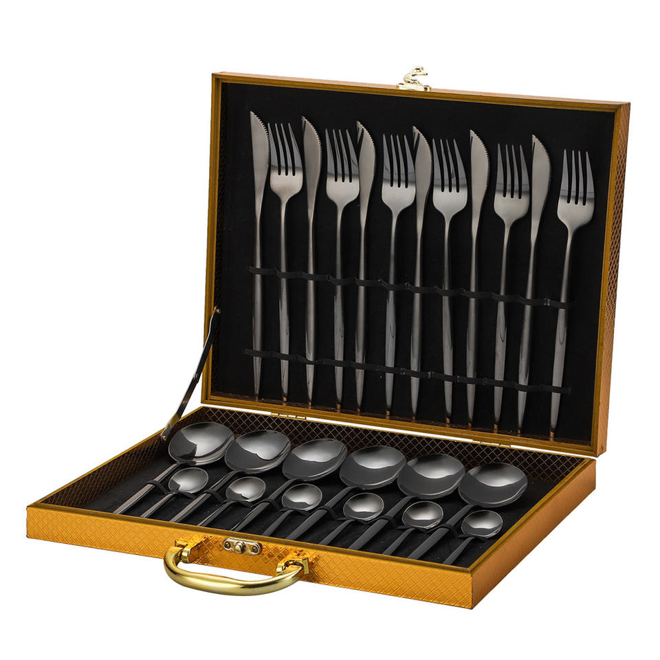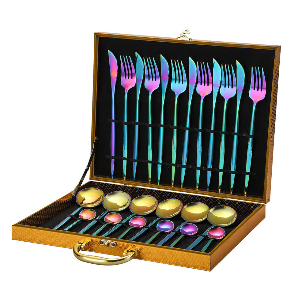 Juego de Cubiertos de Acero Inoxidable de 24 Piezas, Juego de Cubiertos de Lujo con Cuchillo, Tenedor y Cuchara, Caja de Regalo, Aptos para Lavavajillas
