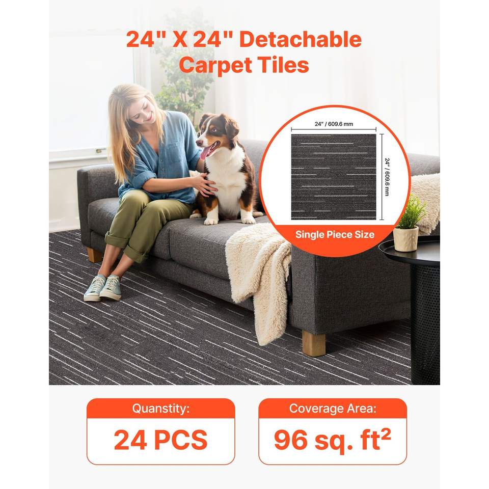 24 Piezas de Baldosas Modulares para Piso Comercial de 24x24 Pulgadas, Alfombra Cuadrada Acolchada Suave, Reutilizable, Cubre una Área de 96 Pies Cuadrados por Unidad