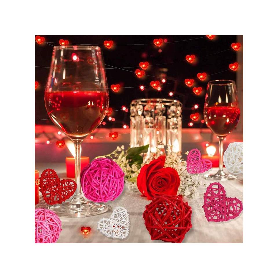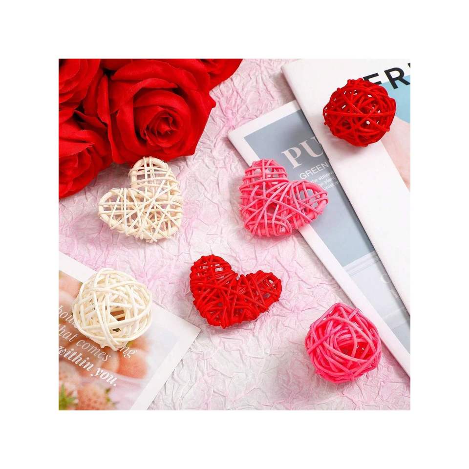 24 Piezas de Adornos Colgantes de Mimbre en Forma de Corazón, Decoraciones Naturales de Ratán para Bodas, Fiestas o San Valentín