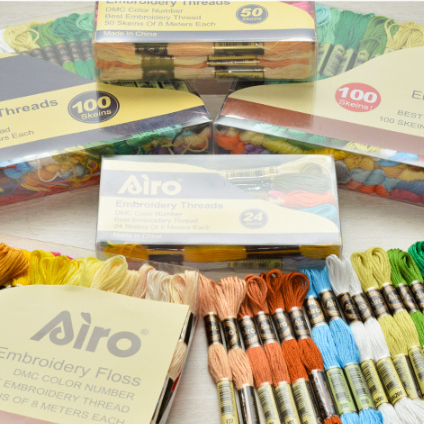 24 Piezas por Caja, 482 Colores, Hilo de Bordar Airo para Punto de Cruz, Material de Hilo de Algodón para Manualidades