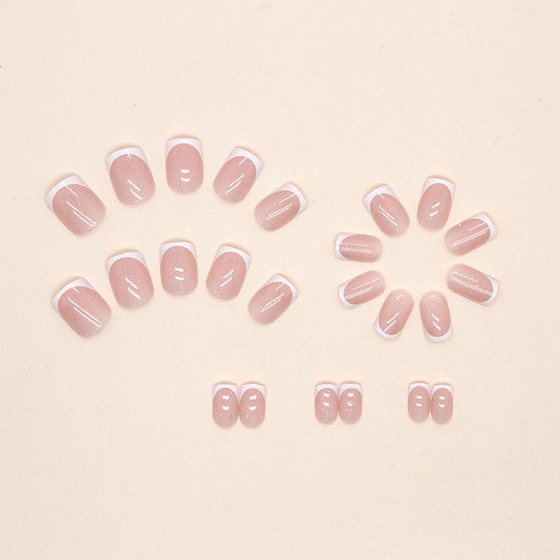 24 unids/caja de uñas postizas francesas cuadradas cortas, prensa en las puntas de las uñas con pegamento de gelatina para uñas y Lima